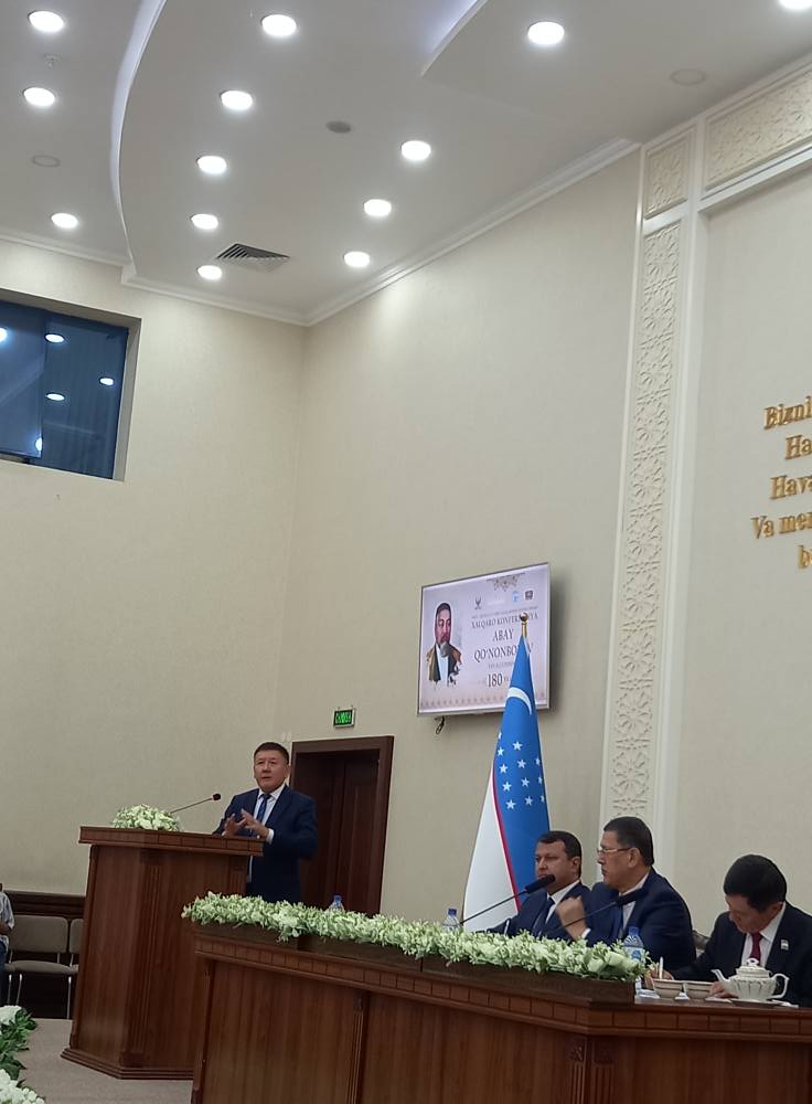 «Абай – қазақ және өзбек халықтарының сүйікті ақыны» атты халықаралық конференция Өзбекстан Жазушылар Одағында өтті. Хакім Абайды өздерінен бөлмей қараған. Конференцияны Өзбекстан Жазушылар Одағының төрағасы Саидов Сирожиддин ашып, өзі басқарып отырды. Абай тойына орай құттықтаулардың бастауын Өзбекстан Республикасы ұлтаралық қарым-қатынастар комитетінің төрағасы Сариев Кахраман алды. Конференцияда Өзбекстан, Қазақстан ғалымдары Абай мұрасына, қазақ-өзбек әдебиеті байланысы мәселелеріне қатысты келелі ойларын ортаға салды. Біз де «Абай даналығы» деген тақырыпта баяндама жасадық.